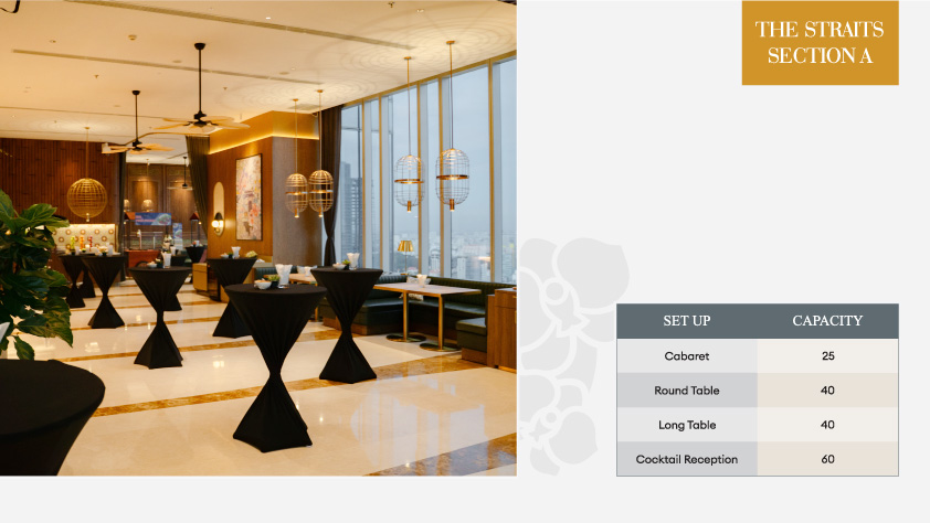 MEETING ROOM – Level 6 GAME ROOM – Level 6 THE STRAITS SECTION A THE STRAITS SECTION B THE STRAITS SECTION C LOBBY LOUNGE POOLSIDE BBQ UPPER DECK MEETING CAPACITY THE STRAITS SECTION A Print adminTHE STRAITS SECTION A10.09.2023