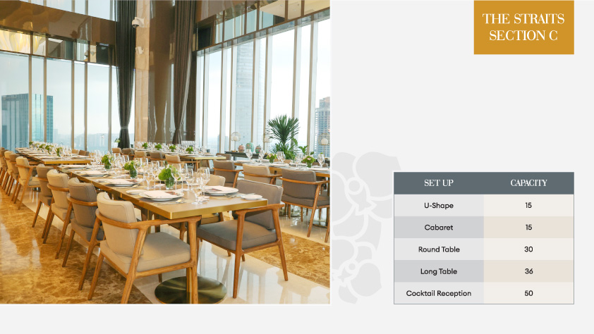 MEETING ROOM – Level 6 GAME ROOM – Level 6 THE STRAITS SECTION A THE STRAITS SECTION B THE STRAITS SECTION C LOBBY LOUNGE POOLSIDE BBQ UPPER DECK MEETING CAPACITY THE STRAITS SECTION C Print adminTHE STRAITS SECTION C10.09.2023